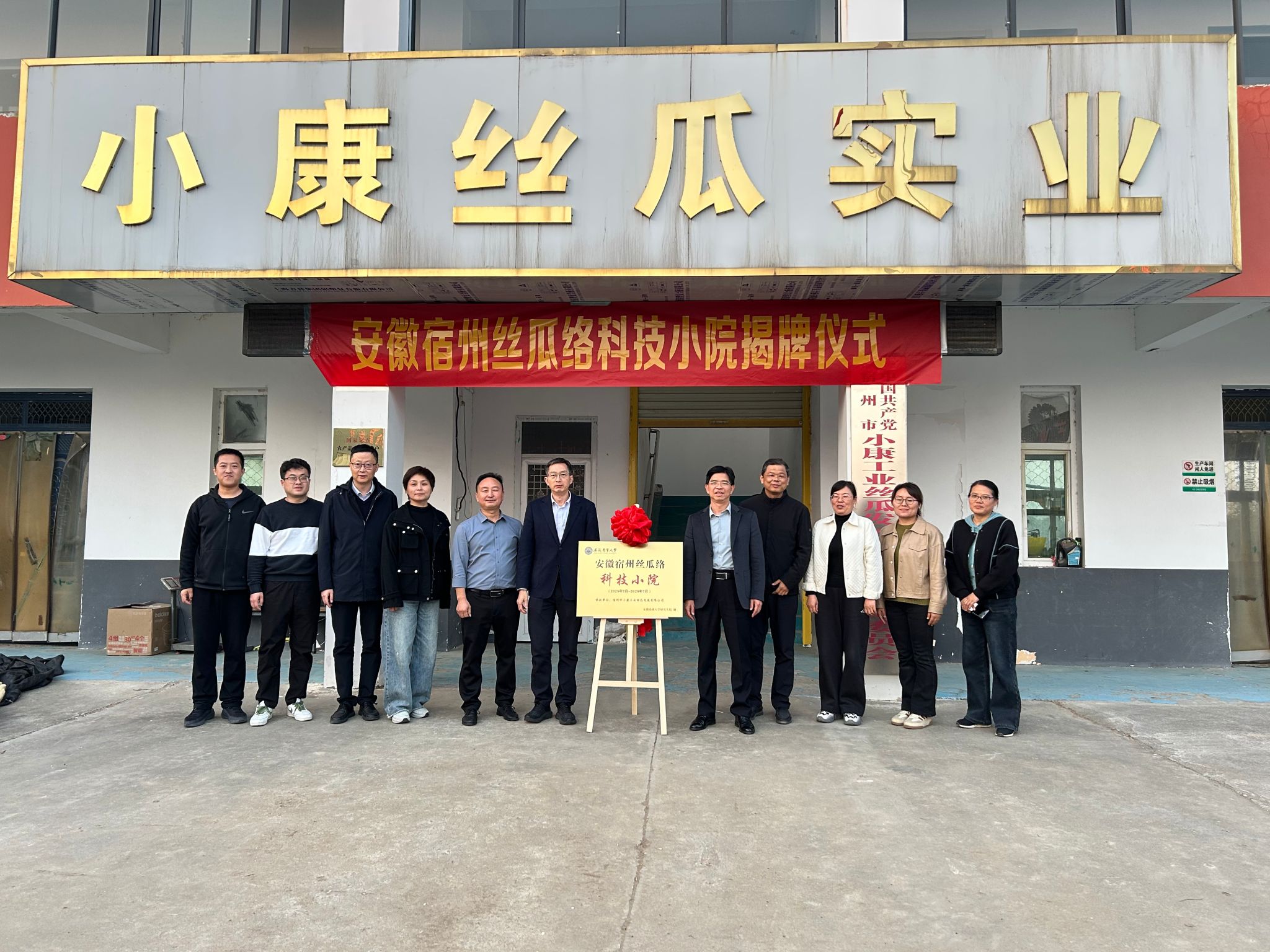 本网讯 11月5日,安徽宿州“丝瓜络”科技小院在宿州市小康工业丝瓜发展有限公司揭牌成立。