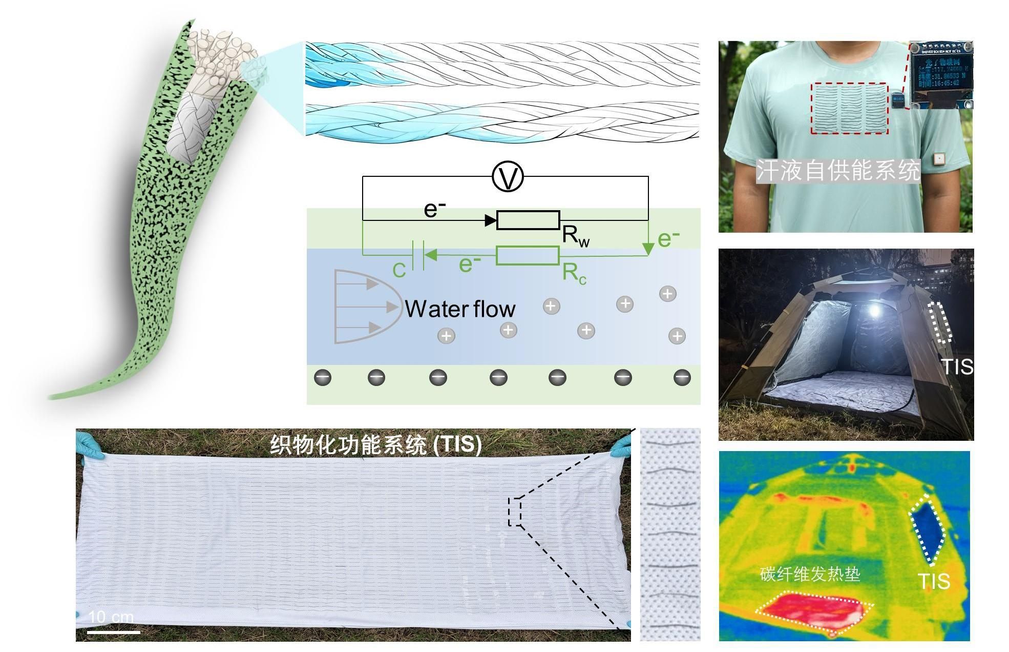 柔性可穿戴电子与物联网(IoT)的快速发展,对轻质、柔性、可持续微型电源提出了更高要求。水伏效应(Hydrovoltaic effect)可将水分蒸发或流动过程中的环境能转化为电能,因其普适、绿色等优势,被认为是微系统供电的重要方向。然而,现有的水伏器件仍存在几个主要问题:1.液体传输驱动力不足;2.能量转换效率偏低;3.在复杂环境下的循环稳定性有限。因此,设计兼具高效液体传输、高能量转换效率及优异循环稳定性的柔性水伏材料具有极大的挑战性。