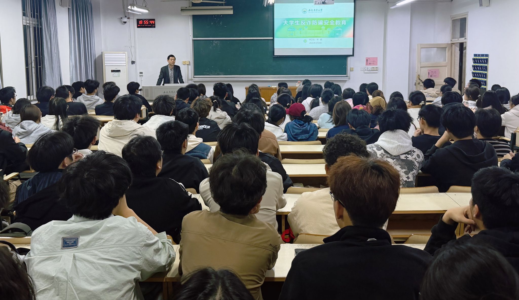 “反诈宣讲”:织密校园安全防护网。4月8日晚,学院开展“提高反诈防骗意识,共建平安和谐校园——防范电信网络诈骗主题宣讲”活动,由校保卫处副处长宋超主讲。活动紧扣当前电信网络诈骗高发态势,通过“案例拆解+套路揭秘”的形式,深入剖析刷单返利、冒充客服与公检法、虚假投资理财、冒充熟人领导四类高频诈骗手段。现场结合真实案件还原诈骗分子话术逻辑,引导学生树立“不轻信、不透露、不转账”的防护意识,切实筑牢财产安全防线。