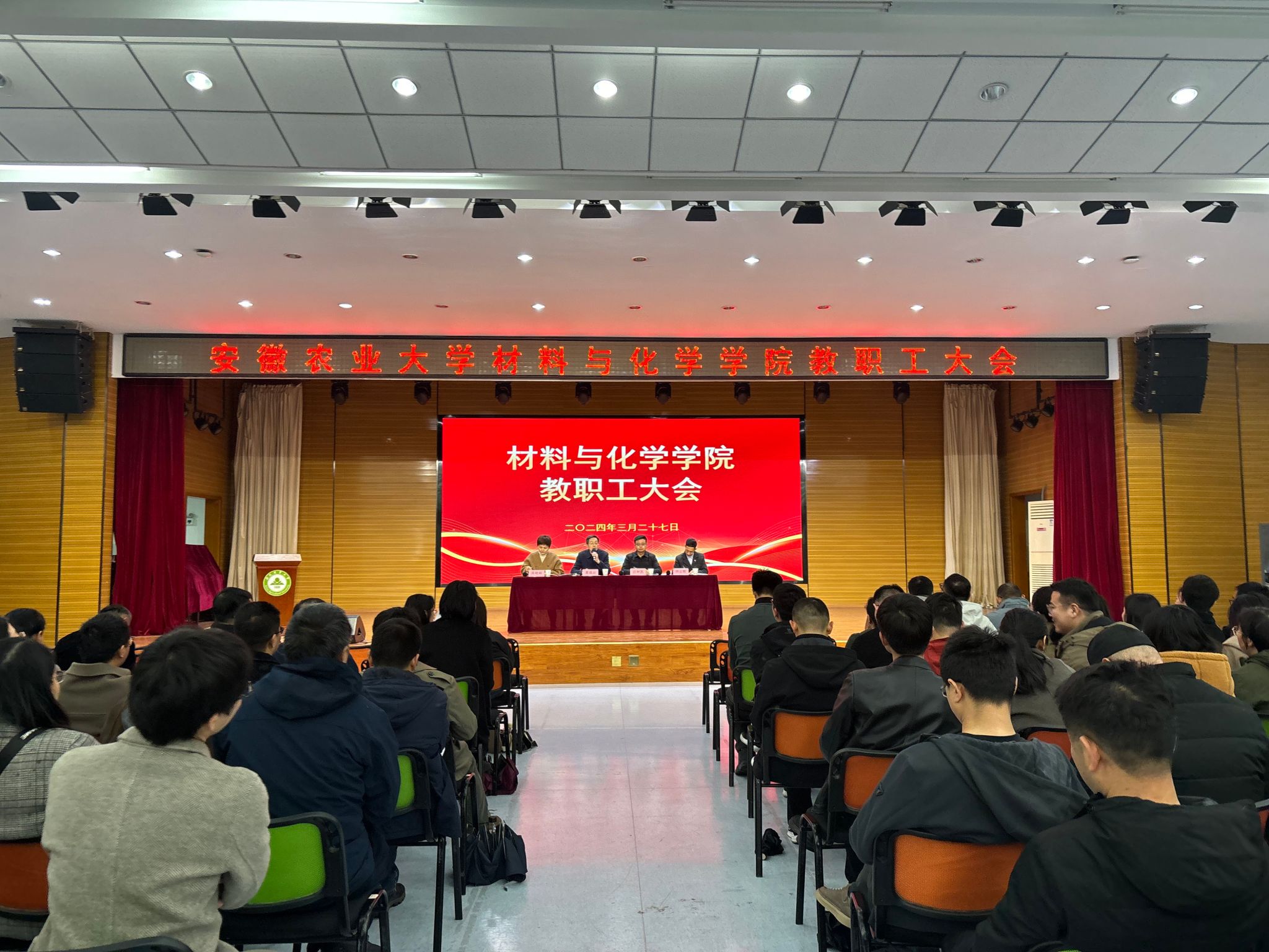 本网讯 3月27日,材料与化学学院召开全体教职工大会,会议由学院党委书记夏成云主持。