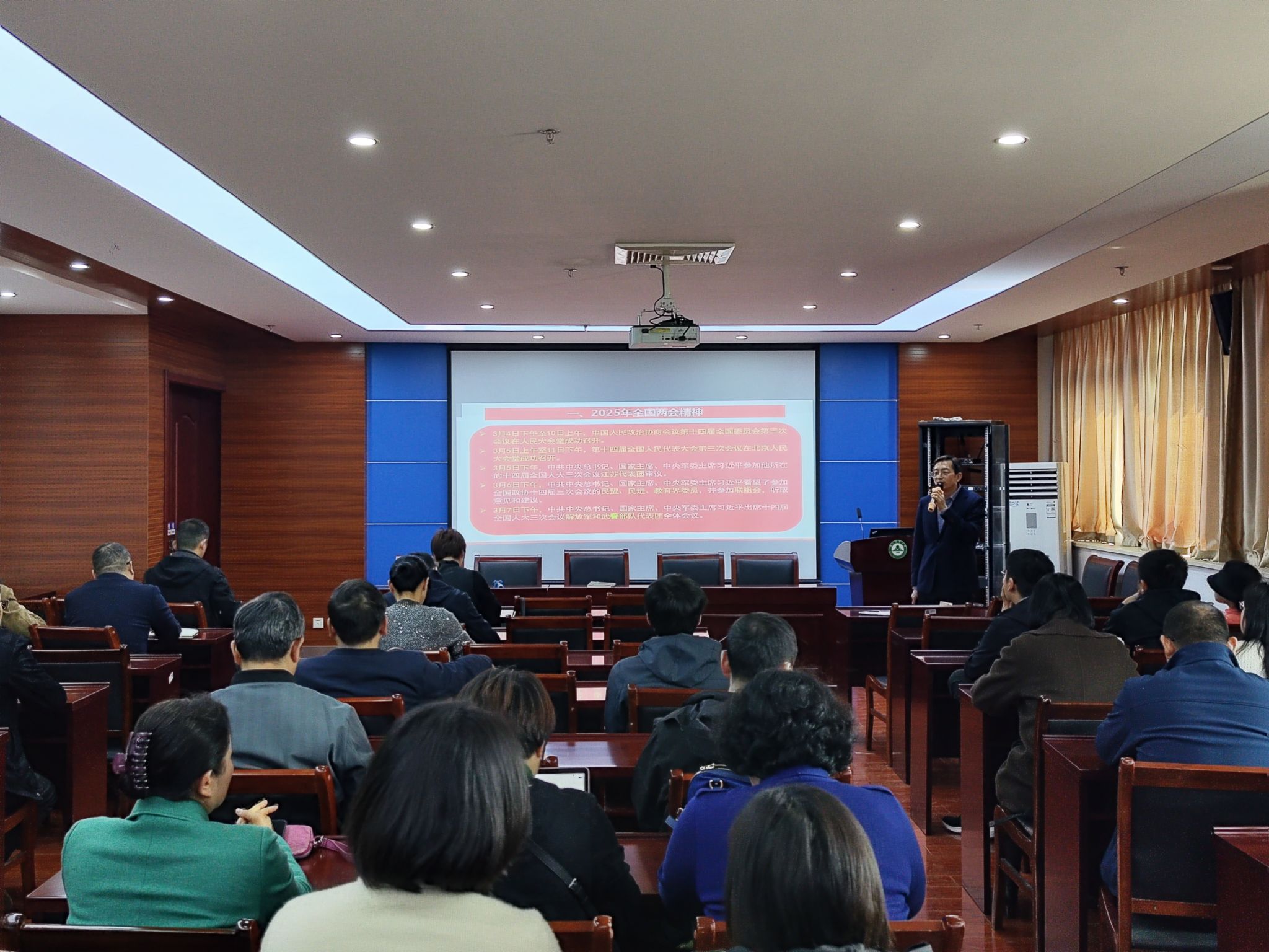夏成云作了题为《凝聚共识 同心协力 加快学院争先进位》的辅导报告。报告围绕深入学习贯彻习近平总书记最新重要讲话和重要指示精神,认真学习了全国两会精神。