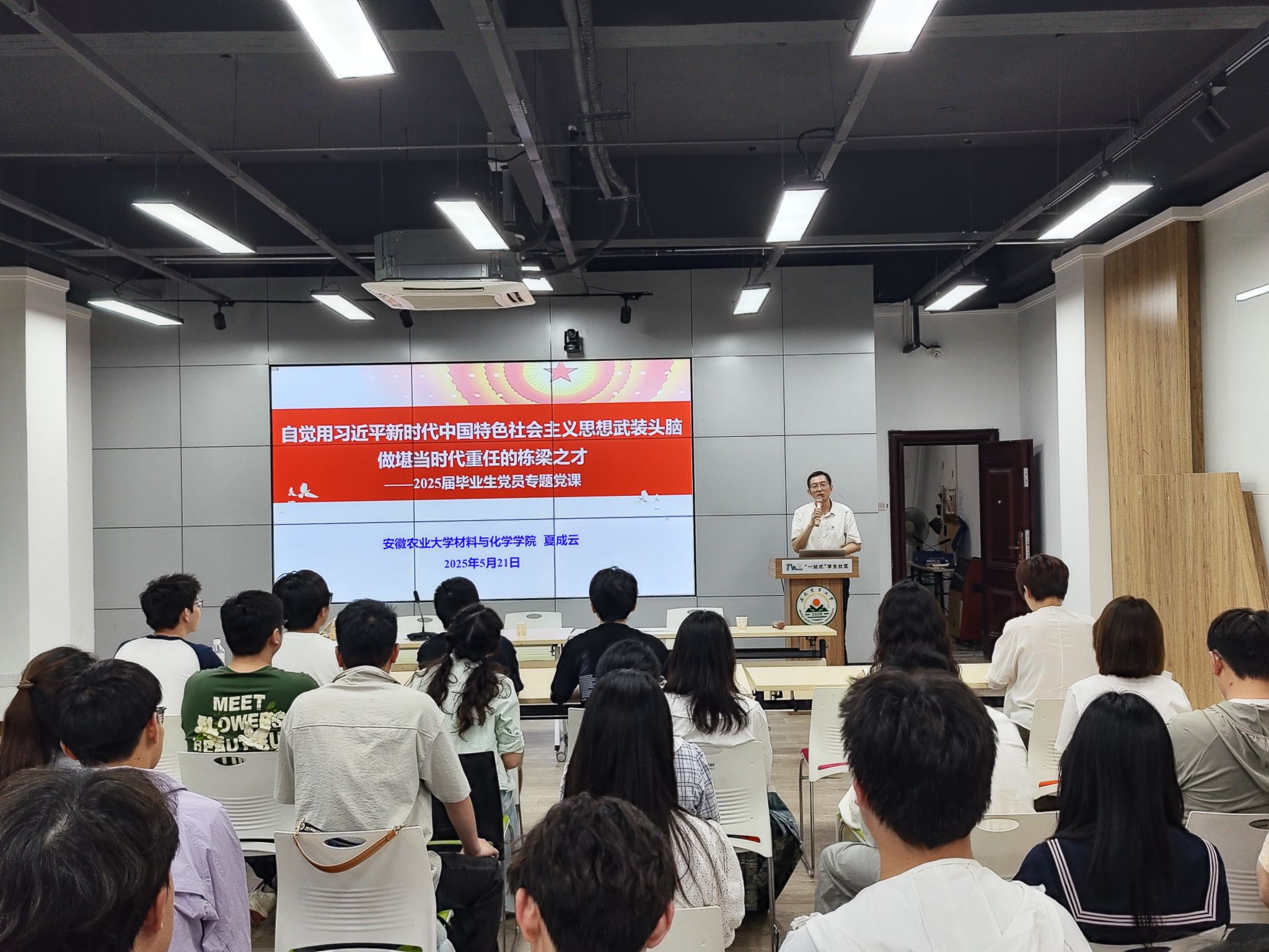 夏成云以“自觉用习近平新时代中国特色社会主义思想武装头脑, 做堪当时代重任的栋梁之才”为题,为毕业生党员上专题党课。党课结合新时代党的作风建设永远在路上,强调党员在新时代要严守纪律规矩,以优良作风投身中国式现代化建设,激励毕业生党员在未来工作岗位上勇挑重担、开拓进取。