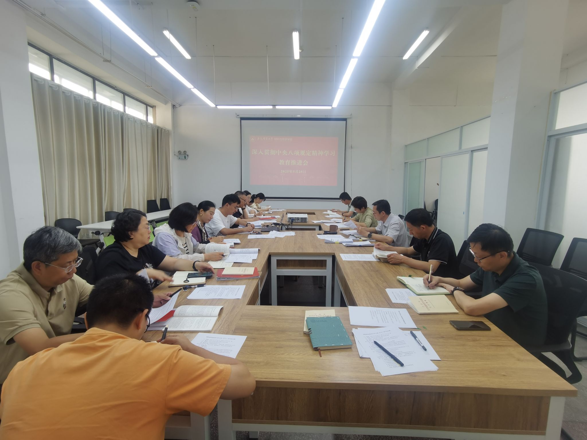 本网讯 5月28日,材料与化学学院召开深入贯彻中央八项规定精神学习教育推进会,学院党委委员、纪委委员、党支部书记参加会议,会议由学院党委书记夏成云主持。