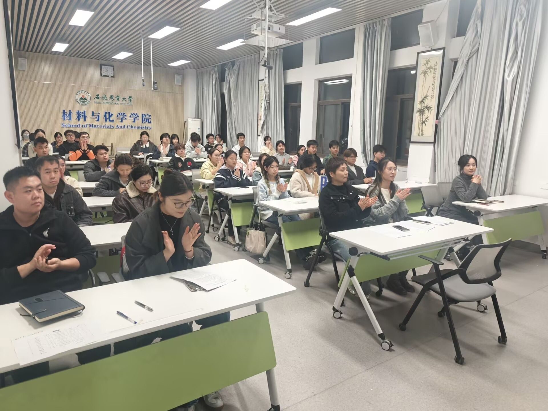 会上,学生代表团听取并审议了《材料与化学学院第二届学生会工作报告》、《材料与化学学院第二届研究生会工作报告》等报告。经民主程序,大会顺利选举产生了材料与化学学院第三届学生分会及研究生分会主席团成员,同时选举出出席安徽农业大学第二十次学生代表大会的16名学生代表以及出席校第六次研究生代表大会的4名研究生代表。
