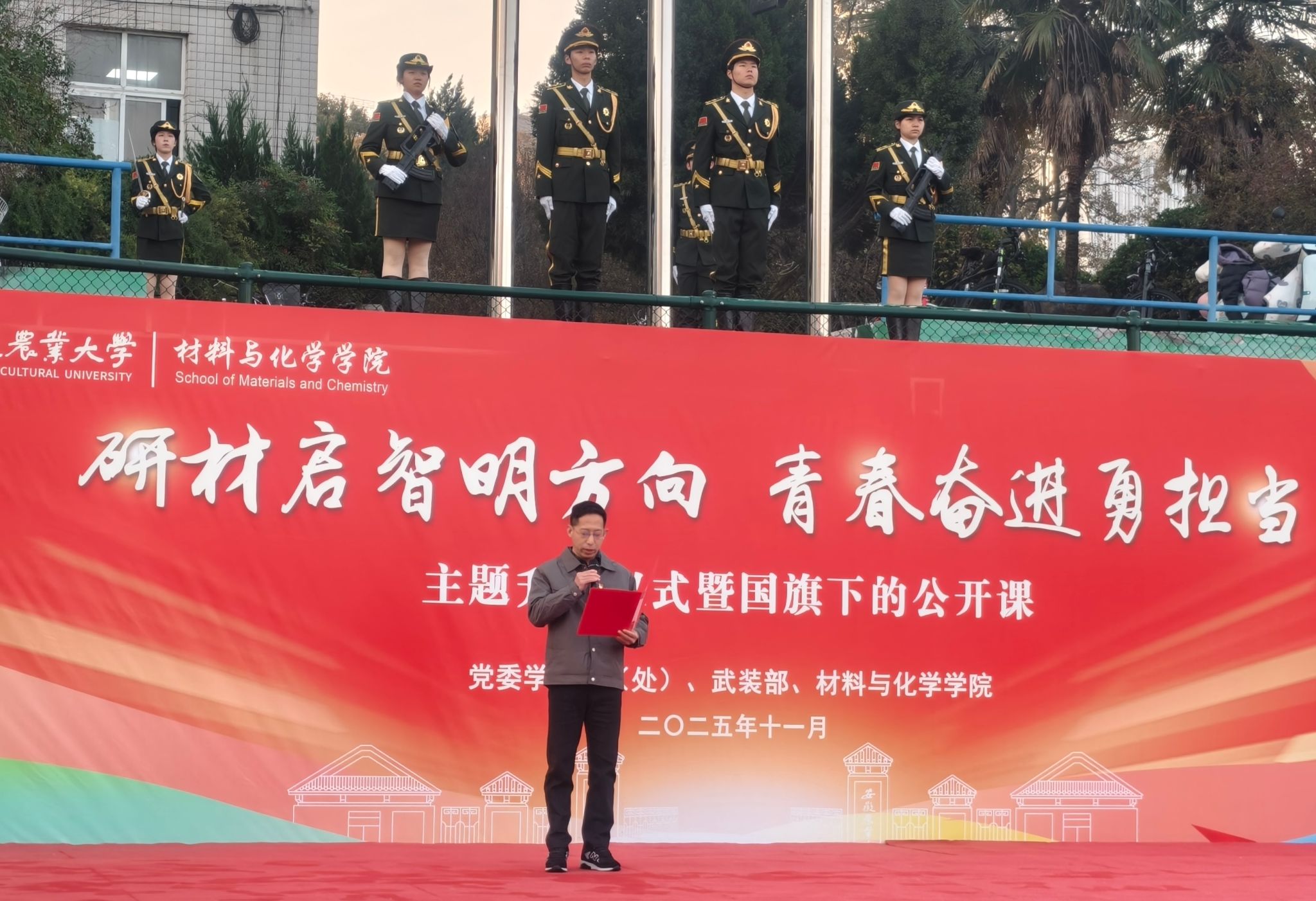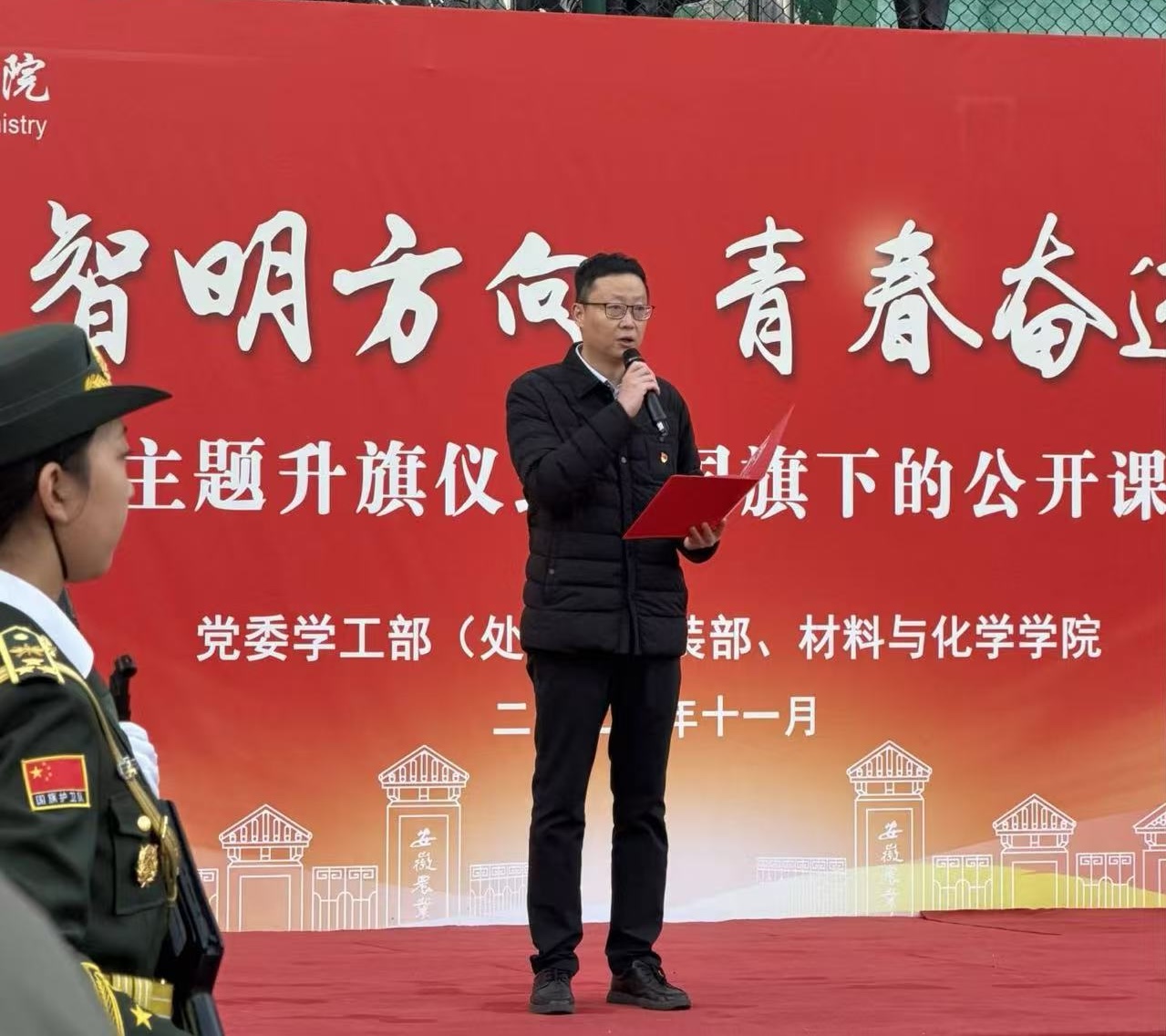 材料与化学学院举行“研材启智明方向,青春奋进勇担当”主题升旗仪式暨国旗下公开课