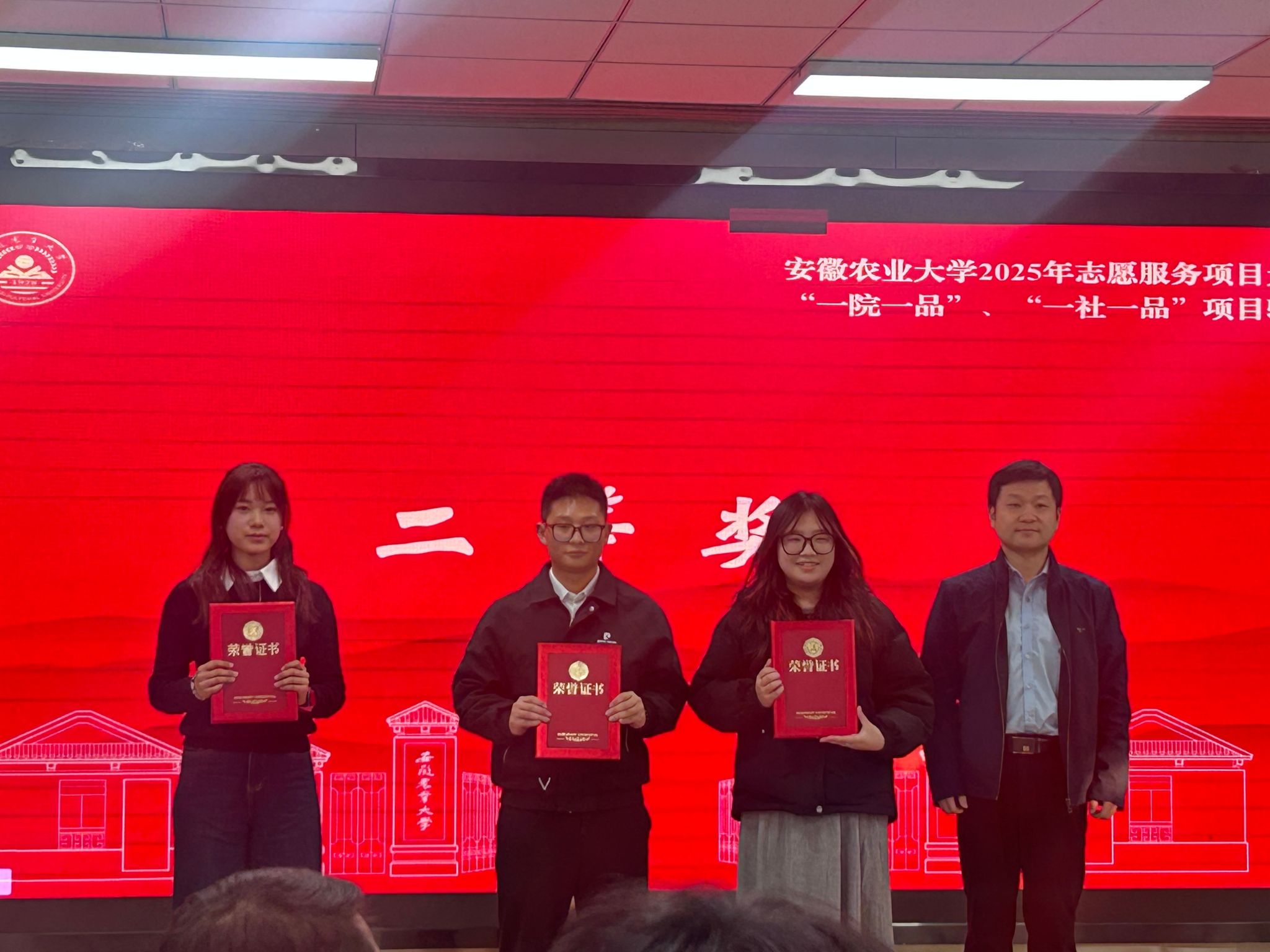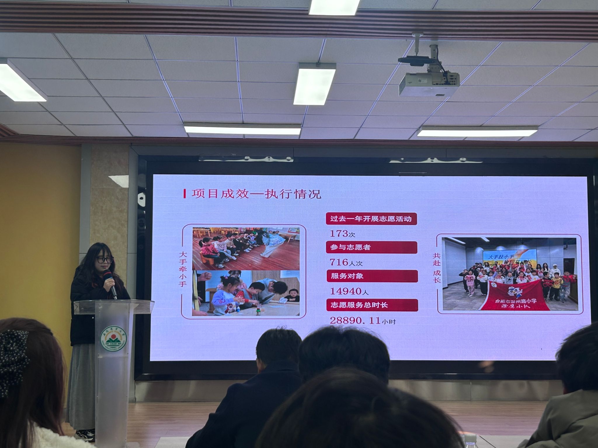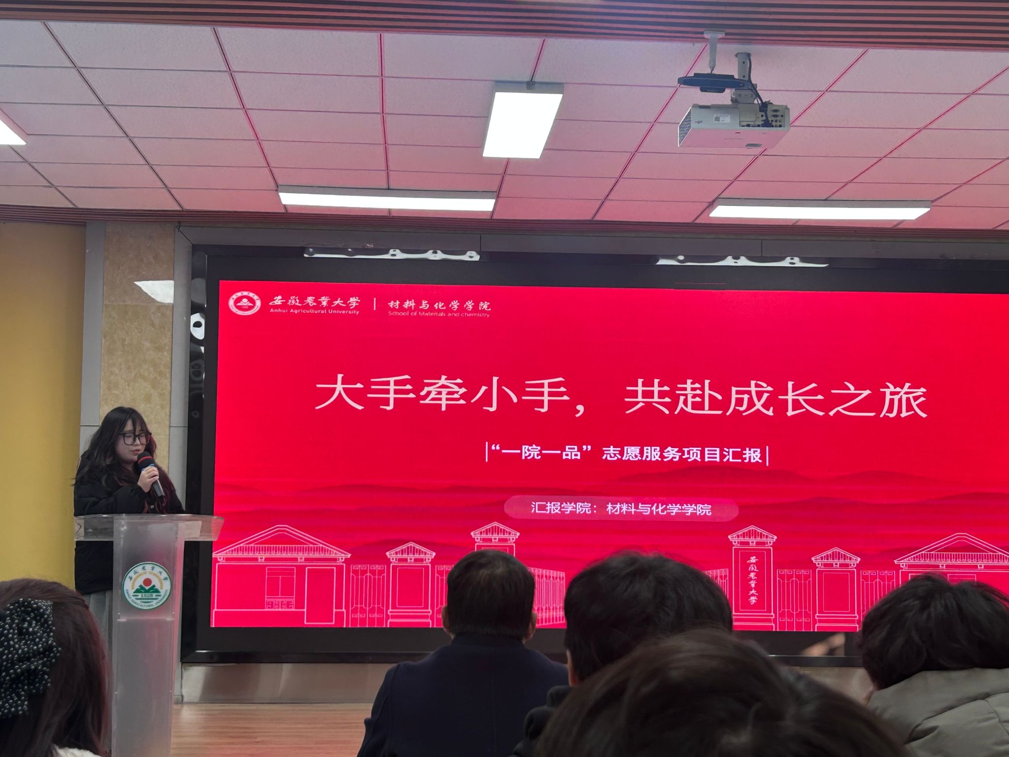 本网讯 12月3日,我校2025年志愿服务大赛暨“一院一品”“一社一品”项目验收会在校创客空间举行。我院团学负责老师及学生分会志愿服务部代表共同观摩比赛。会上,我院学生代表梁家乐以“大手牵小手,共赴成长之旅”为主题进行项目汇报,该项目最终凭借其特色与丰富内涵荣获二等奖。