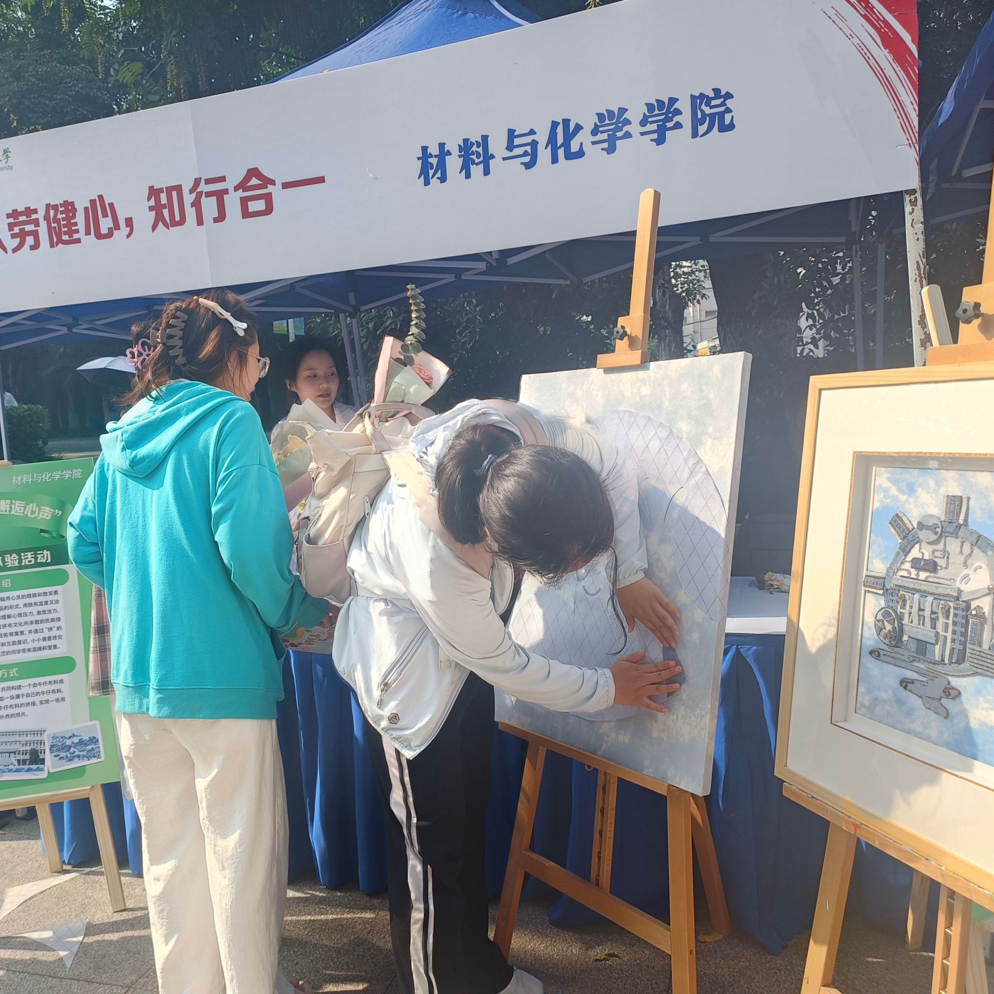 活动现场,同学们用既有温度又治愈的拼布艺术表现形式共创一幅用心灵的眼睛和微笑勇敢面对世界的拼布艺术作品,缓解心理压力。通过“拼”的形式,培养同学们的团队精神和互助意识。