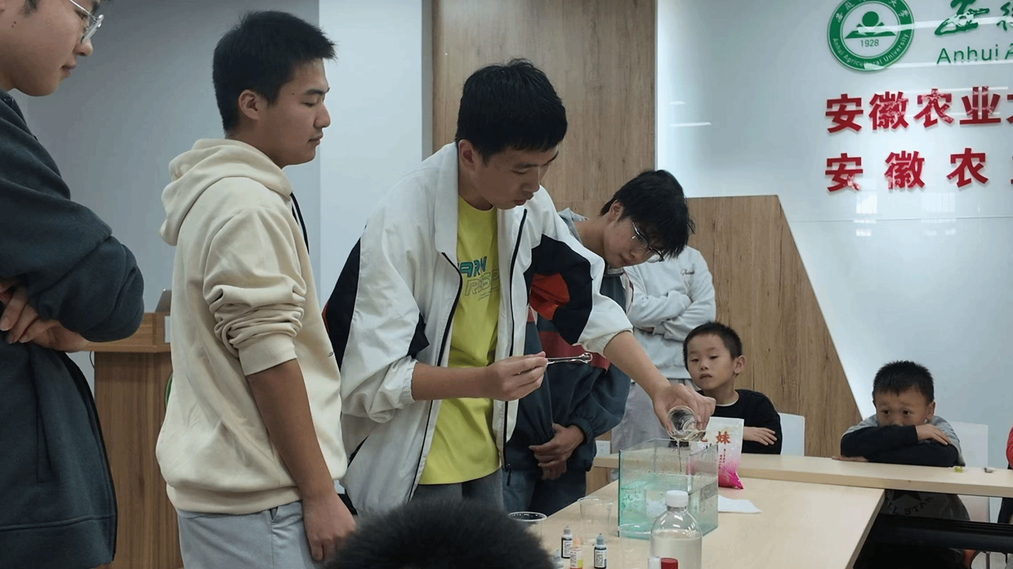 在材料与化学学院志愿者们的热情迎接下,滁州路小学的小朋友们兴高采烈的迈入美丽的安徽农业大学校园。
