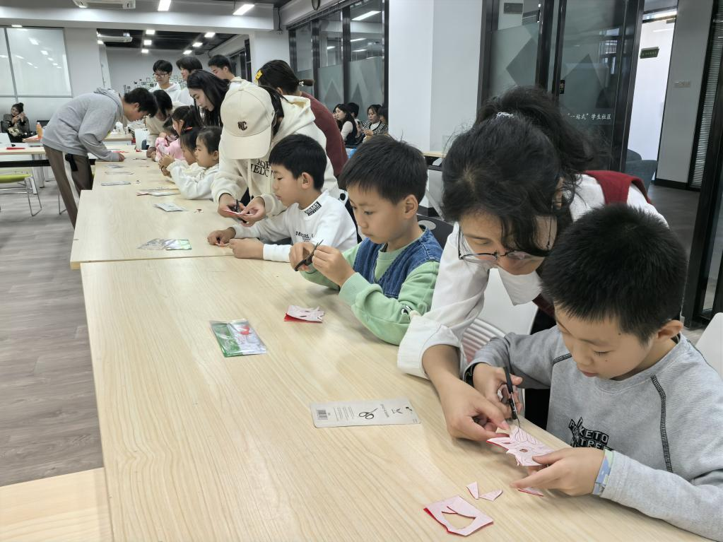 在讲解剪纸的基本技法和注意事项之后,现场的志愿者们以“一带二”模式的传授剪纸技艺,让小朋友们近距离感受非物质文化遗产的独特魅力,体会工匠精神,传承非遗文化。