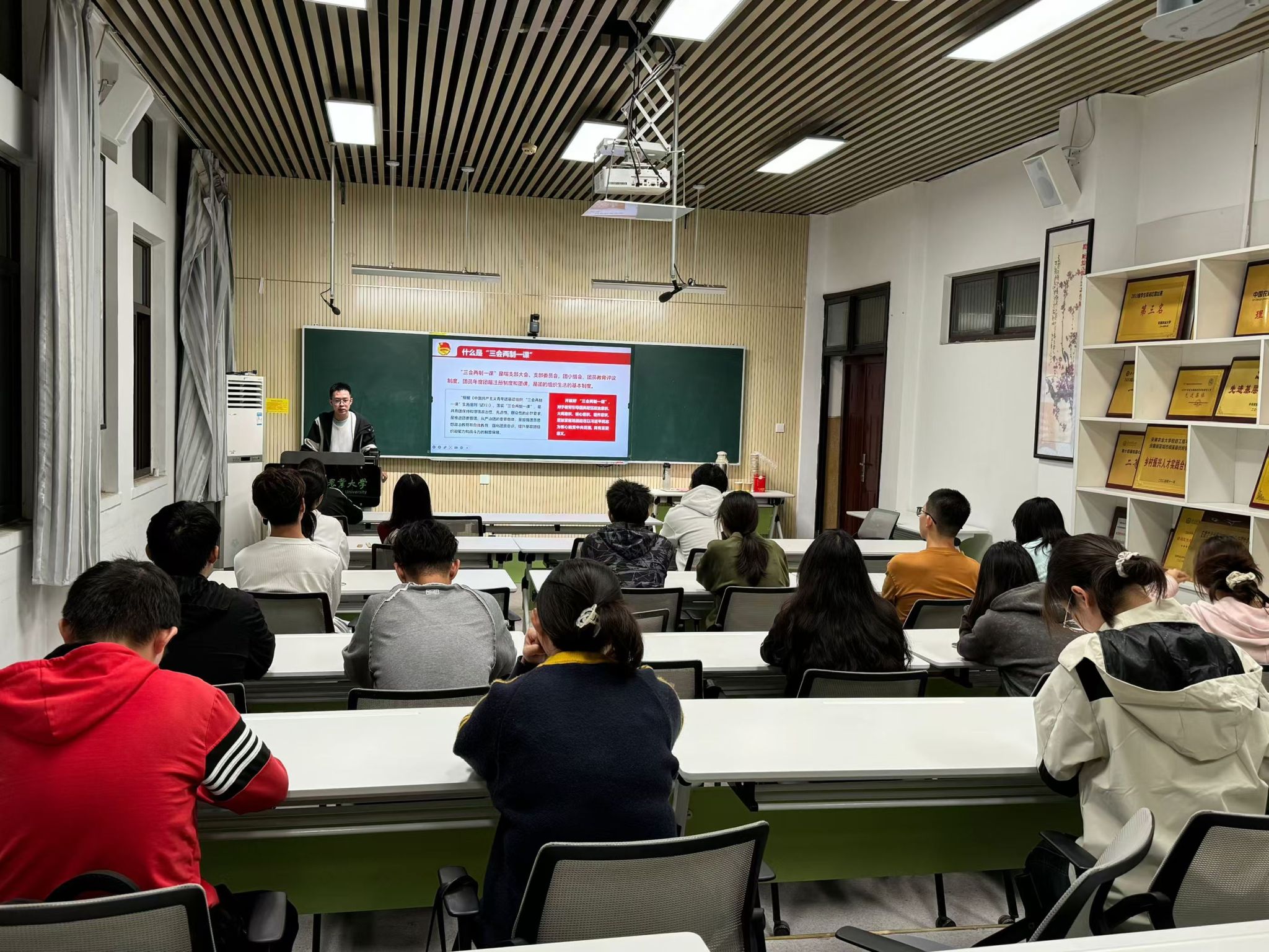 本网讯 11月22日晚,学院于材化楼4A02开展理论宣讲暨新生团干培训活动。此次活动聚焦新生团干部专业知识与技能提升,着力强化其组织管理能力与团队协作精神。院团委老师、院学生会部门负责人与会,24级本科各班班长、团支书参与培训。