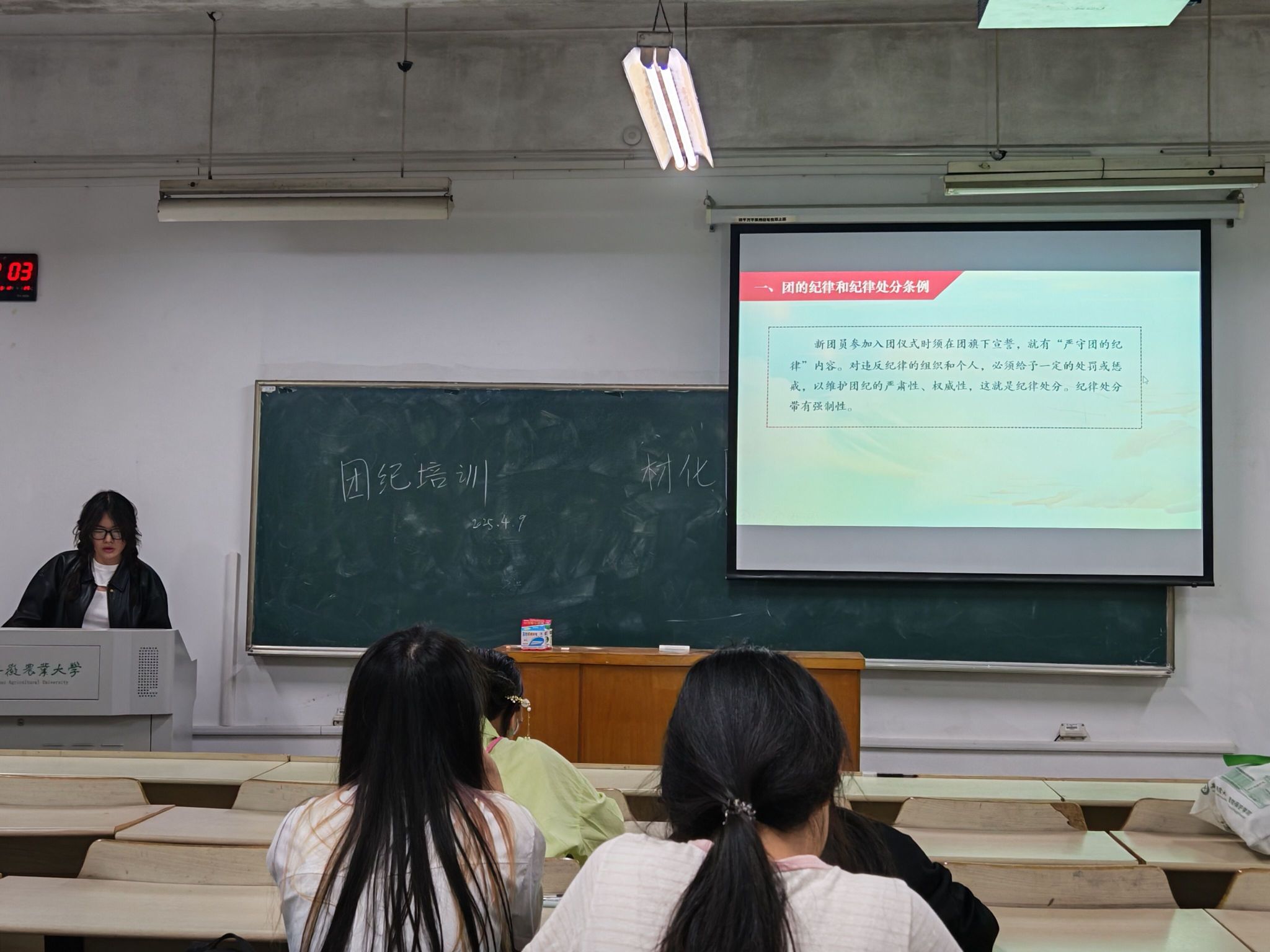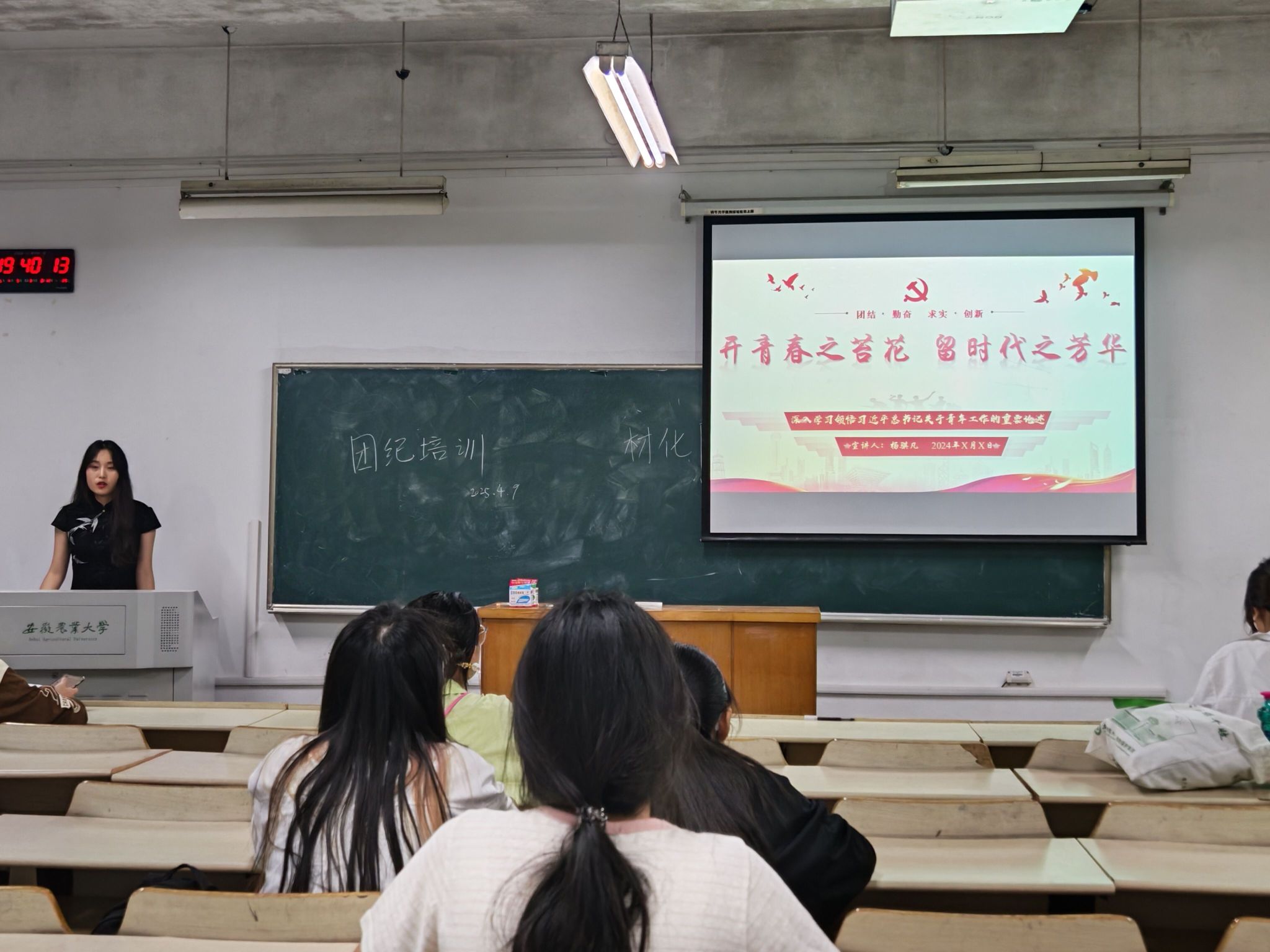 本网讯 为深化团员思想政治教育,提升青年综合素质与实践能力,推动团员在新时代发挥先锋模范作用。2025年4月9日晚,材料与化学学院组织开展发展团员专题培训。校青年宣讲团骨干成员杨兆钰、院青年宣讲团骨干成员杨智涵担任主讲,全体入团积极分子参与学习。