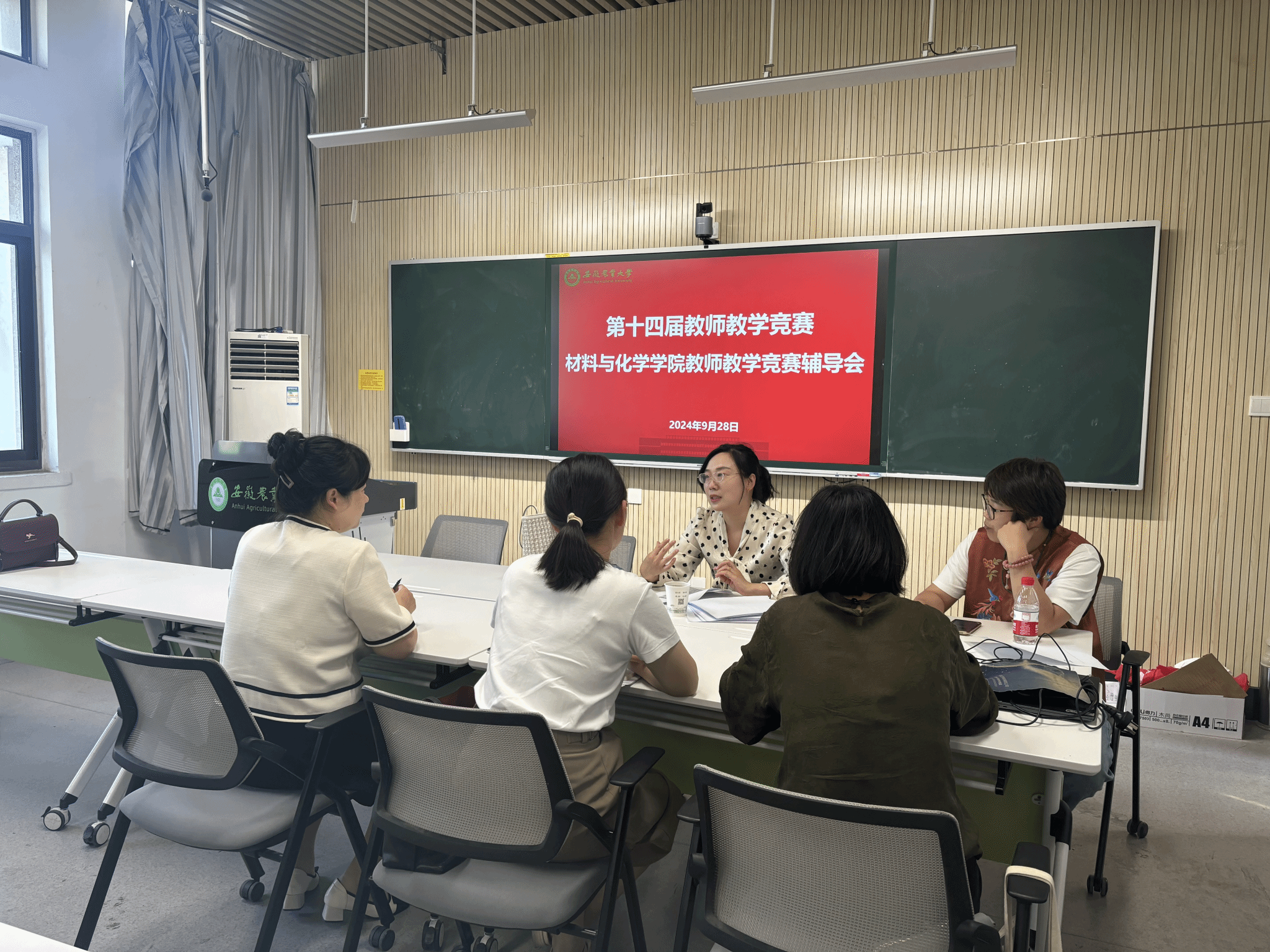 本网讯 为提升教师教学能力和教学水平,助力我院第十四届教师教学竞赛选手做好赛前准备,9月28日材料与化学学院在材化楼402举办了教师教学竞赛辅导会。本次辅导会特邀第四届全国高校教师教学创新大赛国赛二等奖获奖者樊冬梅老师做专题辅导。辅导会由学院教学竞赛工作组组长刘娜主持,副院长许云辉出席了辅导会。