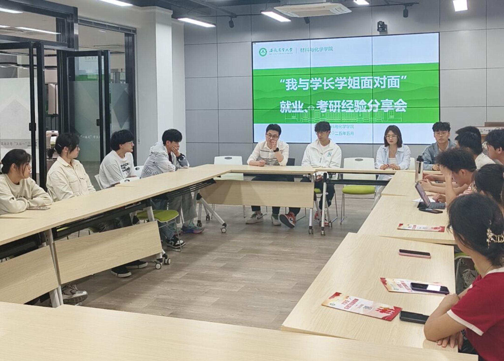 学院精心邀请各专业在考研和就业领域取得优异成绩的学长学姐,举办多场经验分享会。活动现场,学长学姐们结合自身经历,从考研复习规划、备考技巧、心态调整,到求职简历制作、面试技巧、职业选择等方面,为同学们进行了全面而细致的讲解。互动环节中,同学们积极提问,学长学姐们耐心解答,现场气氛热烈,同学们纷纷表示受益匪浅。