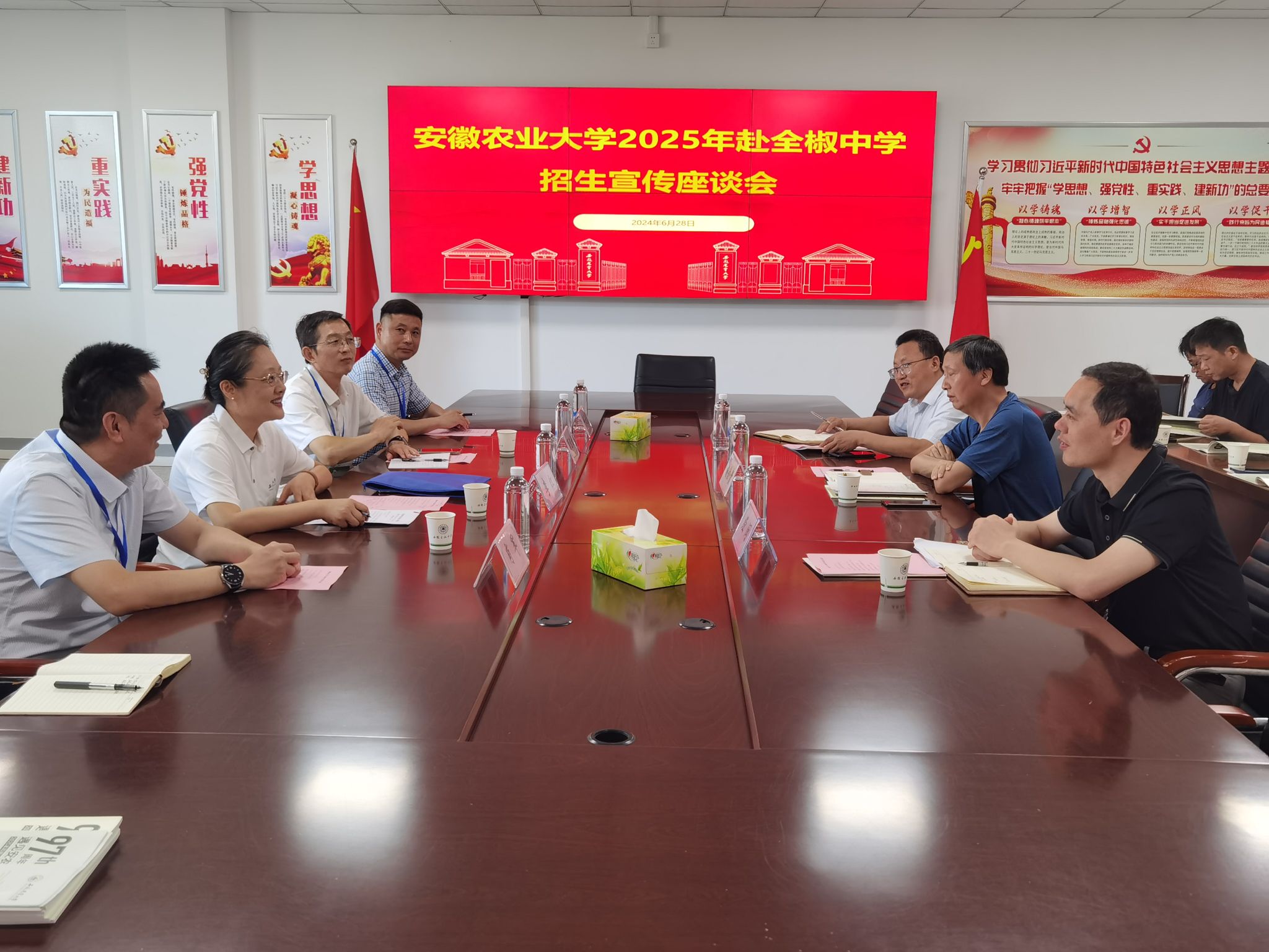 本网讯  为进一步提升我校的知名度和影响力,吸引更多优质生源报考我校,6月25日至28日,材料与化学学院招生宣传工作组奔赴滁州片区10所生源基地中学,开展形式多样、内容丰富的招生宣传活动。校党委常委副校长李红亲临全椒中学指导招生宣传工作,校教务处(招生办)审计处、图书馆等职能部门协同参加招生宣传活动。
